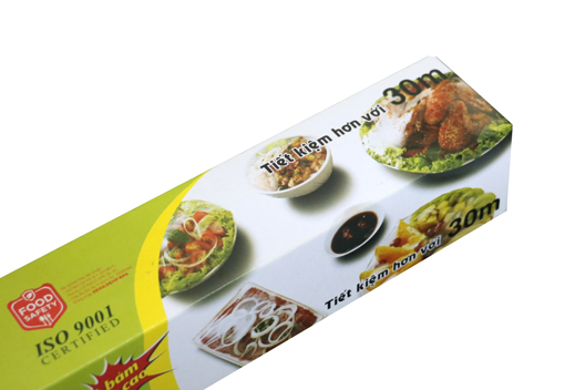 Mỗi cuộn màng đều có thông tin sản phẩm được in rõ trên vỏ hộp giấy